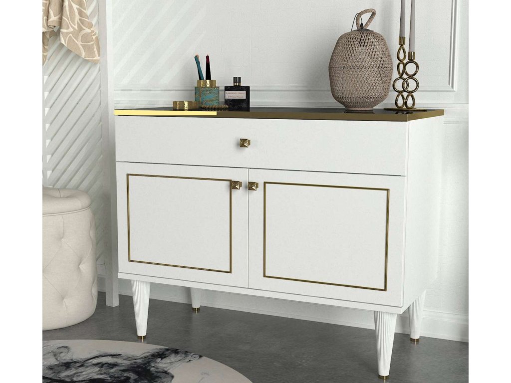 Komoda se pyšní moderním bílým provedením, které snadno zapadne do jakéhokoliv interiéru. Je vybavena jednou zásuvkou a skříňkou se dvěma dvířky, což poskytuje dostatek úložného prostoru pro vaše věci. LTD materiál o tloušťce 18 mm zajišťuje pevnost a dlouhou životnost komody.