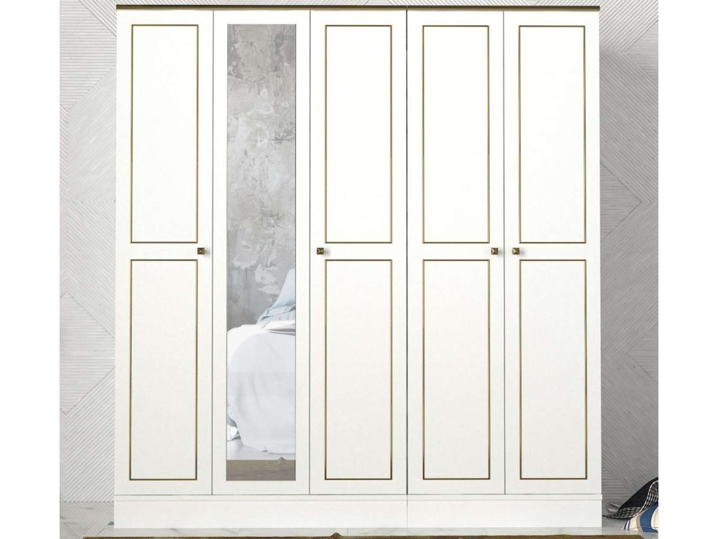 - Vybavení: 3 šatní tyče, 4 police a zrcadlo