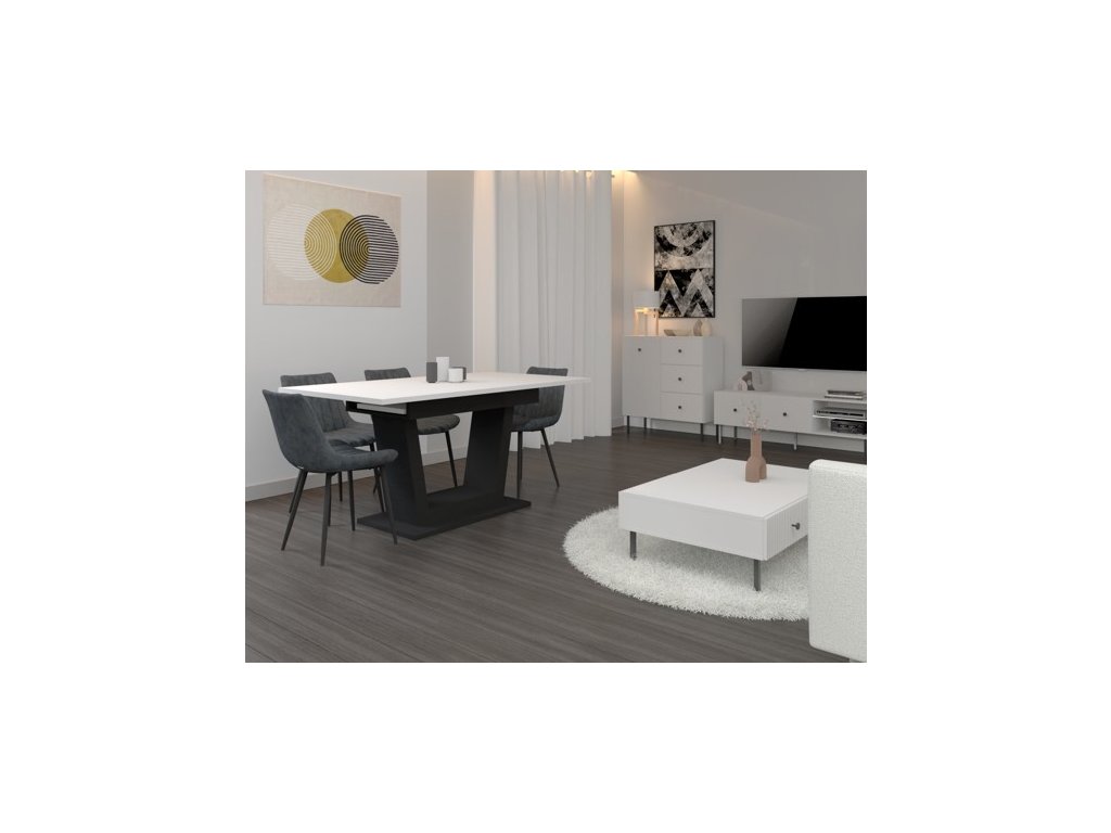 Barevné provedení jídelního stolu: bílá/černá