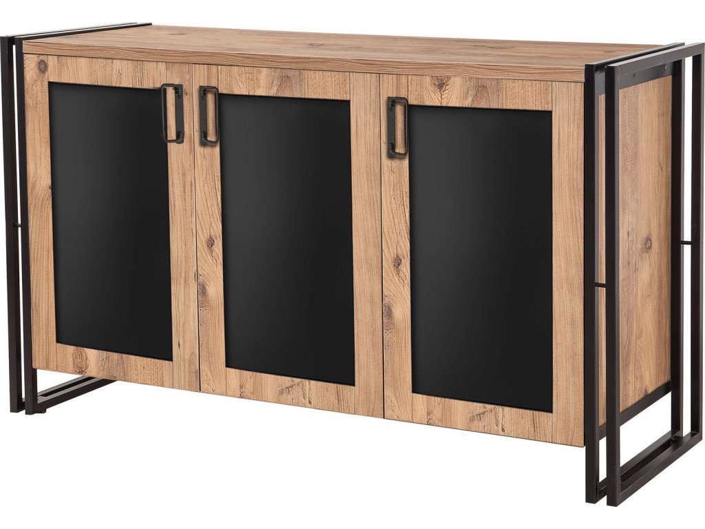 Komoda je stylovým a praktickým doplňkem do vašeho obývacího pokoje. S moderním industriálním designem, kombinací borovicového dekoru a černých kovových prvků, přináší do interiéru nadčasový vzhled a funkčnost.