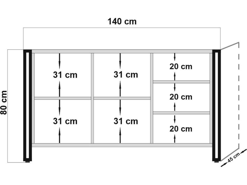 Komoda nabízí prostorný úložný prostor díky třem plným dvířkům. Je ideální pro uskladnění knih, dokumentů nebo dalších předmětů, které chcete mít uspořádané a po ruce. Robustní konstrukce z kvalitního melaminu a VT laminátu zajišťuje dlouhou životnost a odolnost proti opotřebení.
