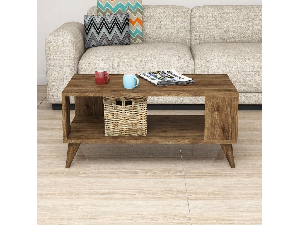 Díky své jednobarevné barvě a bohémskému konceptu je tento konferenční stolek výrazným kouskem, který okamžitě pozvedne vzhled a atmosféru vašeho obývacího pokoje. Jeho ořechová barva dodává nádech sofistikovanosti a elegance, díky čemuž je perfektním doplňkem jakéhokoli moderního i tradičního interiéru.