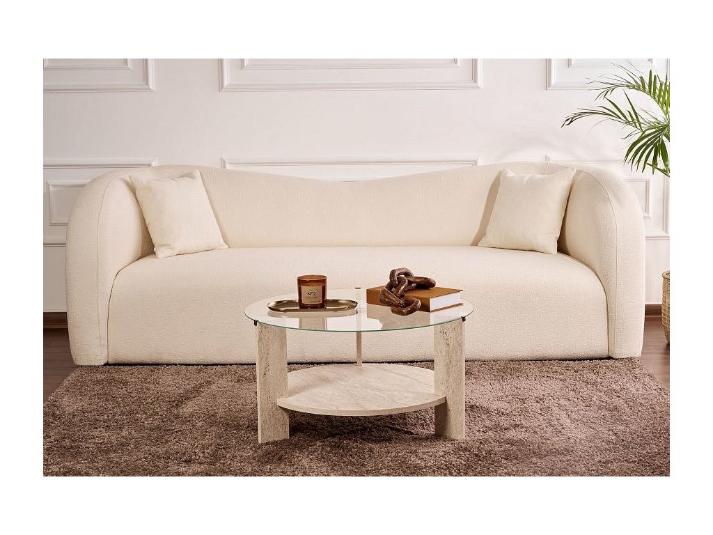 Clara kulatý konferenční stolek, traventine / transparent