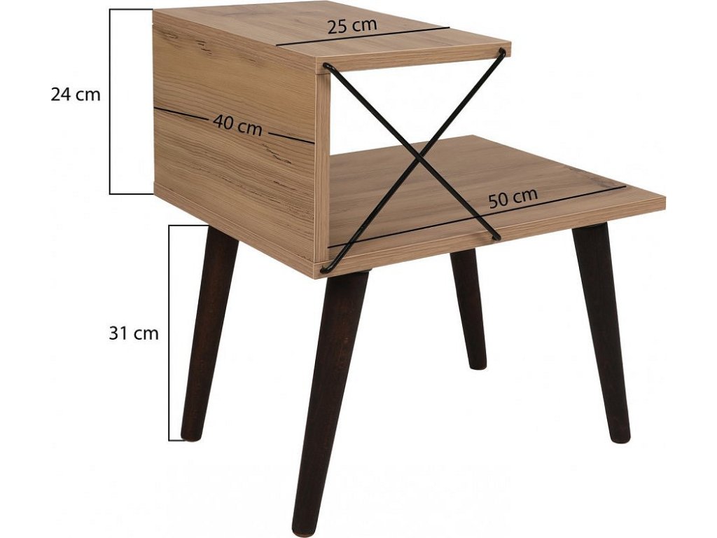 Tento noční stolek s četnými policemi nabízí dostatek úložného prostoru pro všechny vaše noční nezbytnosti. Spodní police o délce 50 cm poskytuje dostatek místa pro větší předměty, zatímco horní police o délce 25 cm je ideální pro menší věci. Snadno si zde uspořádejte knihy, brýle a další osobní věci.