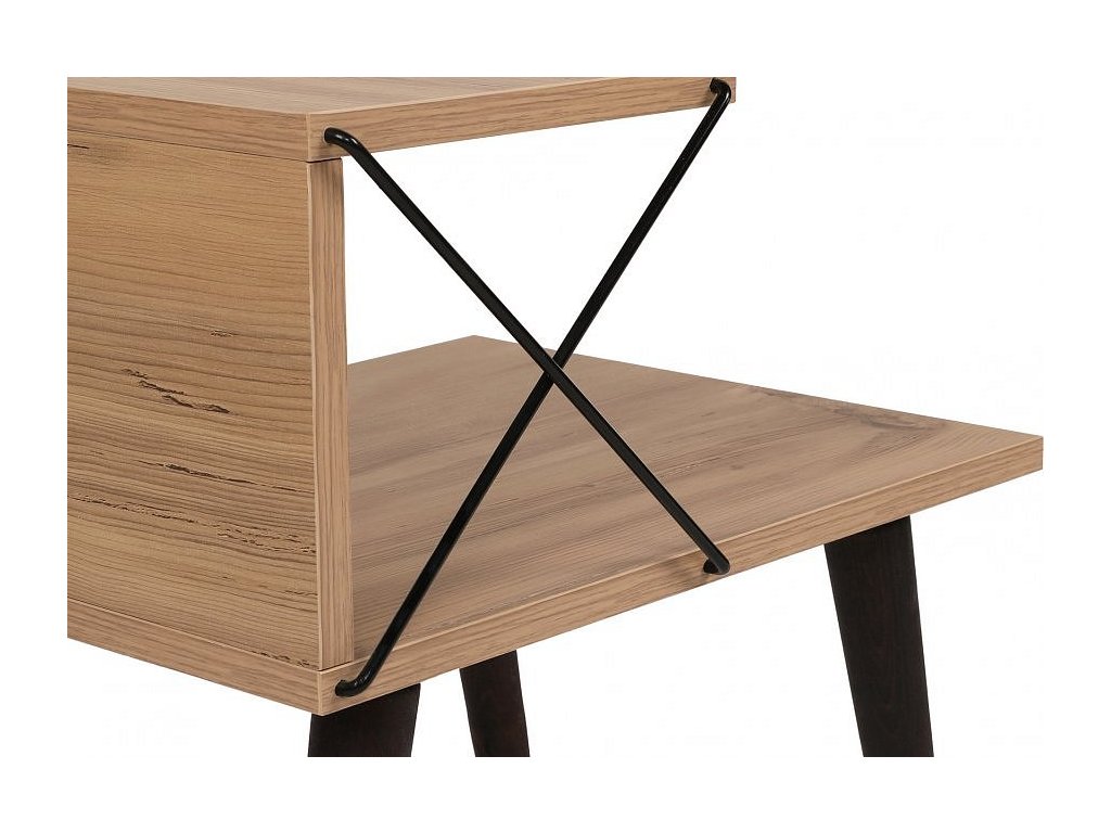 Bukové nohy nočního stolku dodávají nádech přírodní krásy a doplňují barvu borovice. Tato harmonická kombinace vytváří vizuálně přitažlivý kus nábytku, který se bez námahy hodí do jakéhokoli stylu interiéru.
