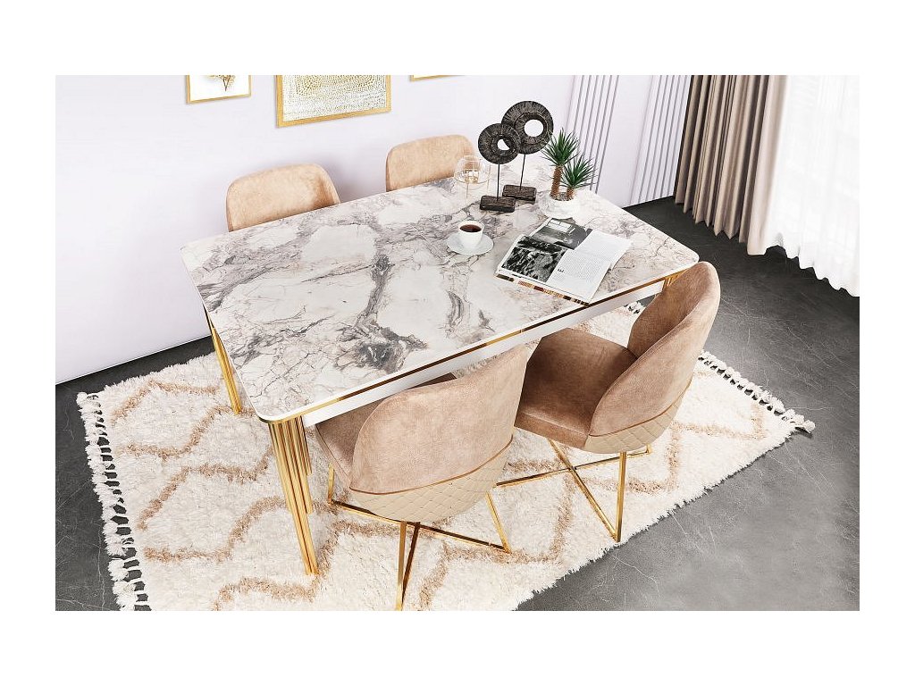 Damla 1102 rozkládací jídelní stůl, zlatá / bílá