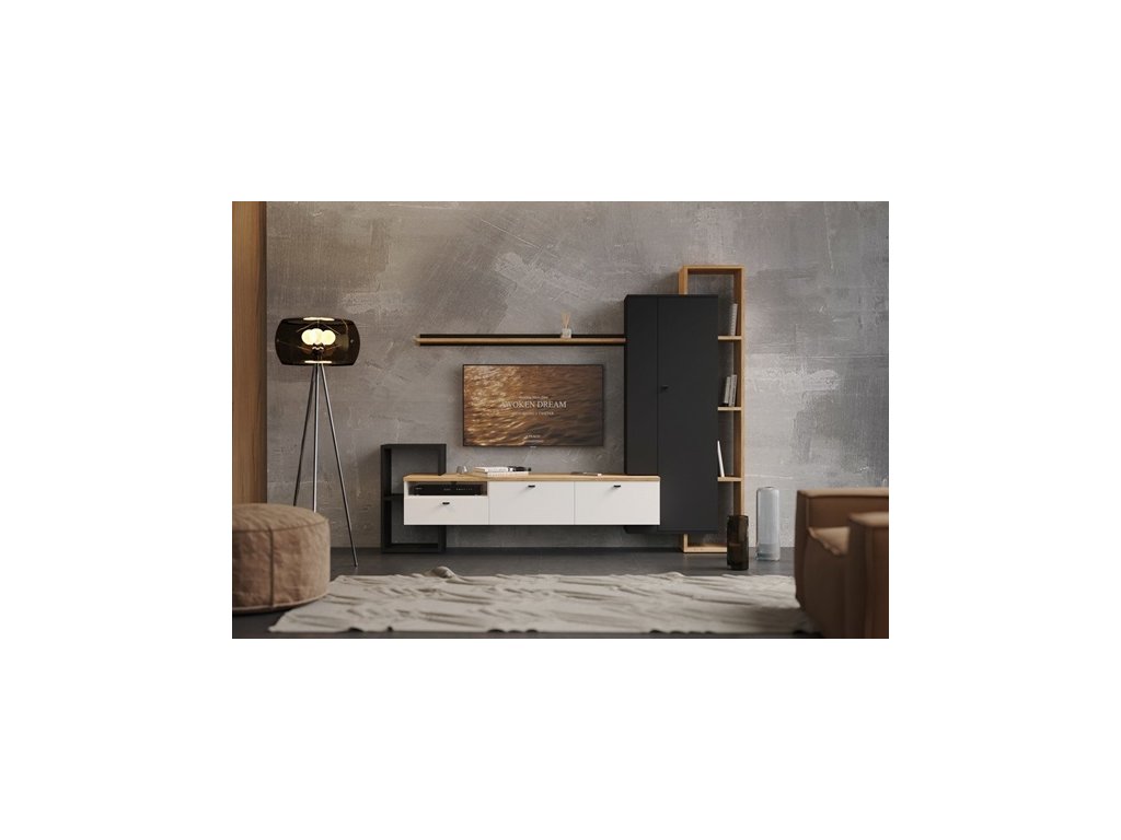 DENIOS byt. stěna - dub / černá / bílá (DEONIS -3balíky) (UG) (K150) NOVINKA