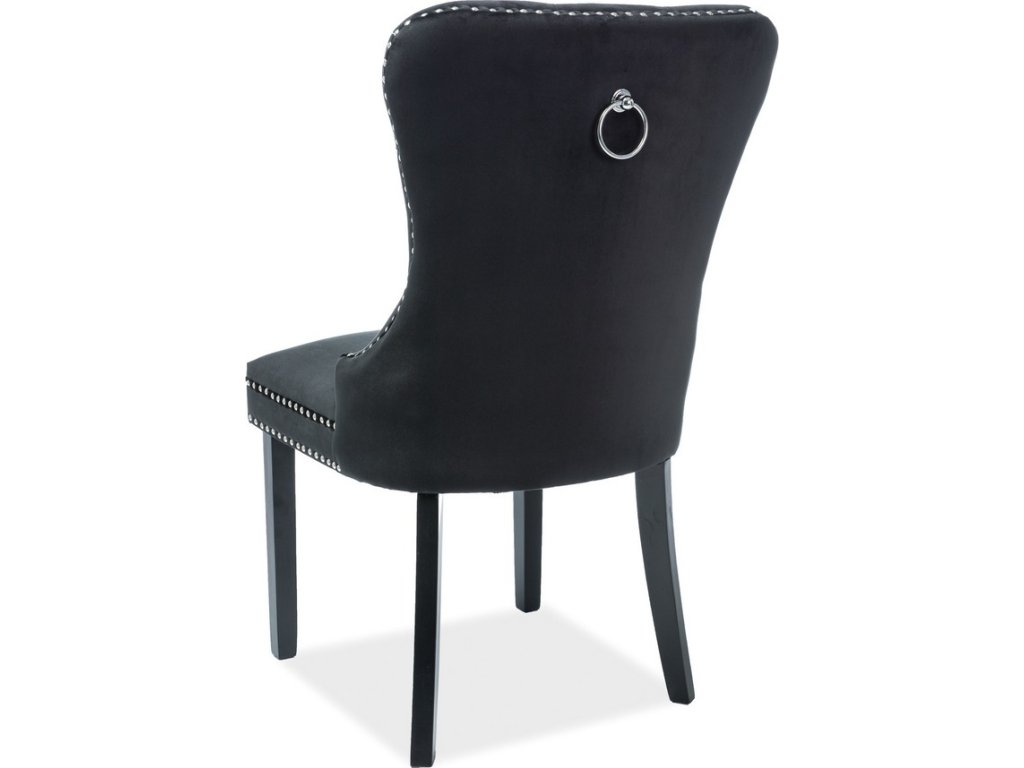 CASA 11119 Atraktivní, velice pohodlná čalouněná židle - křeslo v novodobém stylu modern glamour. Nohy jsou ze dřeva v černé barvě, čalounění sedáku je vyrobeno z potahové látky Bluvel aksamit v modré barvě. Kovové zdobení po obvodu a na zádech židle dodá ještě větší nádech luxusu. Dodáváme v demontovaném stavu.