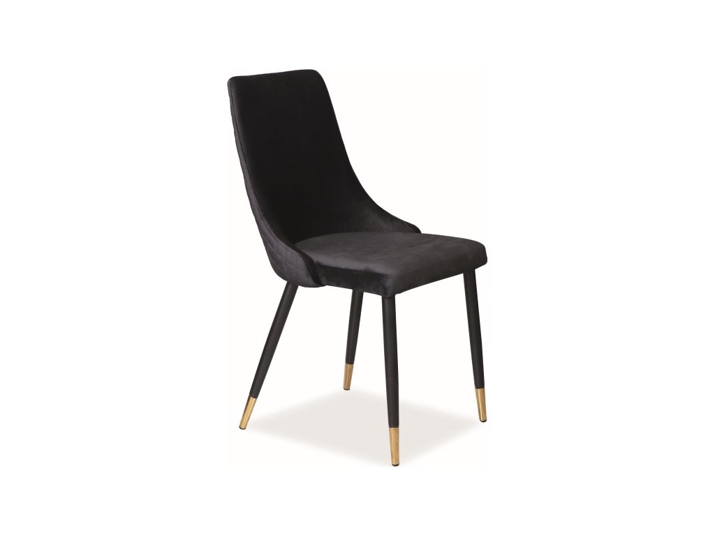 CASA 11038 Čalouněná jídelní židle vhodná nejen do Vaší jídelny a kuchyně, ale také do kanceláře, čekárny či recepce. Nohy jsou z kovu v černé a zlaté barvě, čalounění sedáku je z potahové látky aksamit Bluvel 19 v černé barvě. Pohodlí a elegance pro každý interiér.