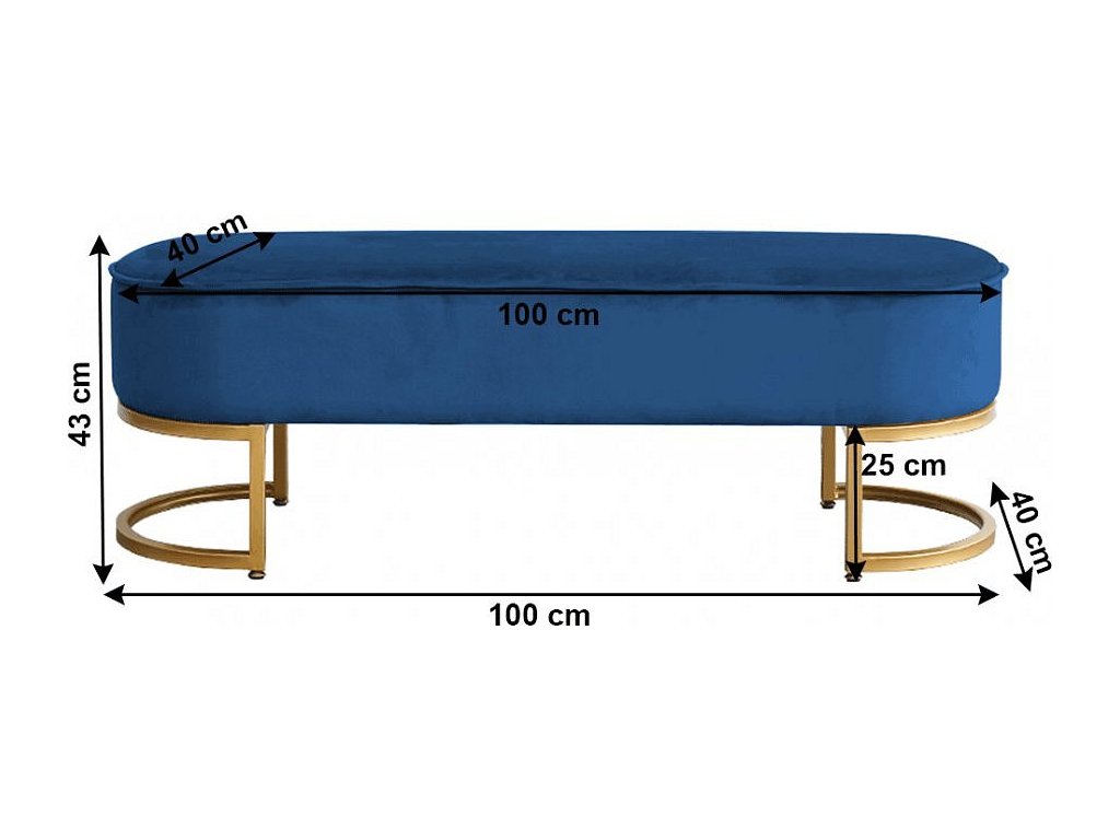 Designová lavice, modrá Velvet látka/gold chrom-zlatý, MIRILA NEW