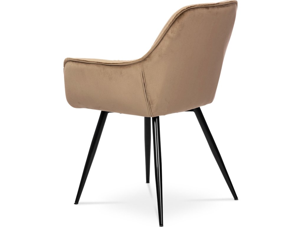 Jídelní židle s označením DCH-421 CAP4 nabízí komfortní sezení díky čalounění z měkké sametové látky v cappuccino odstínu, která je doplněna designovým prošitím pro zvýraznění estetického dojmu. Pevná čtyřnohá podnož z kovu s černým lakem zajišťuje stabilitu a dlouhou životnost. Opěradlo i sedák jsou ergonomicky tvarované a vybavené područky přispívají k pohodlí při delším posezení. Sametový potah je příjemný na dotek a snadno se udržuje, což ocení každý uživatel. Židle je vhodná do moderních i klasických interiérů, kde vynikne její kombinace elegance a funkčnosti.