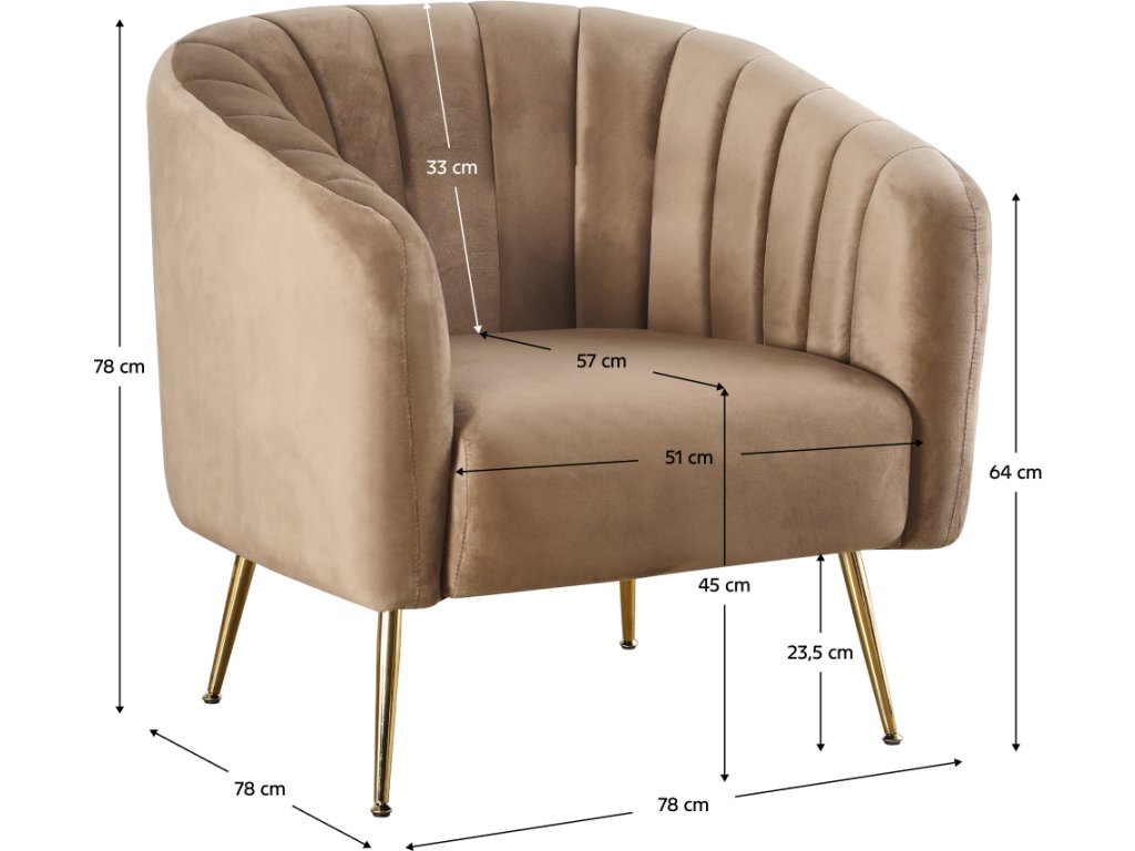 Designové křeslo, hnědá Velvet látka/gold chrom-zlatý, BAGY