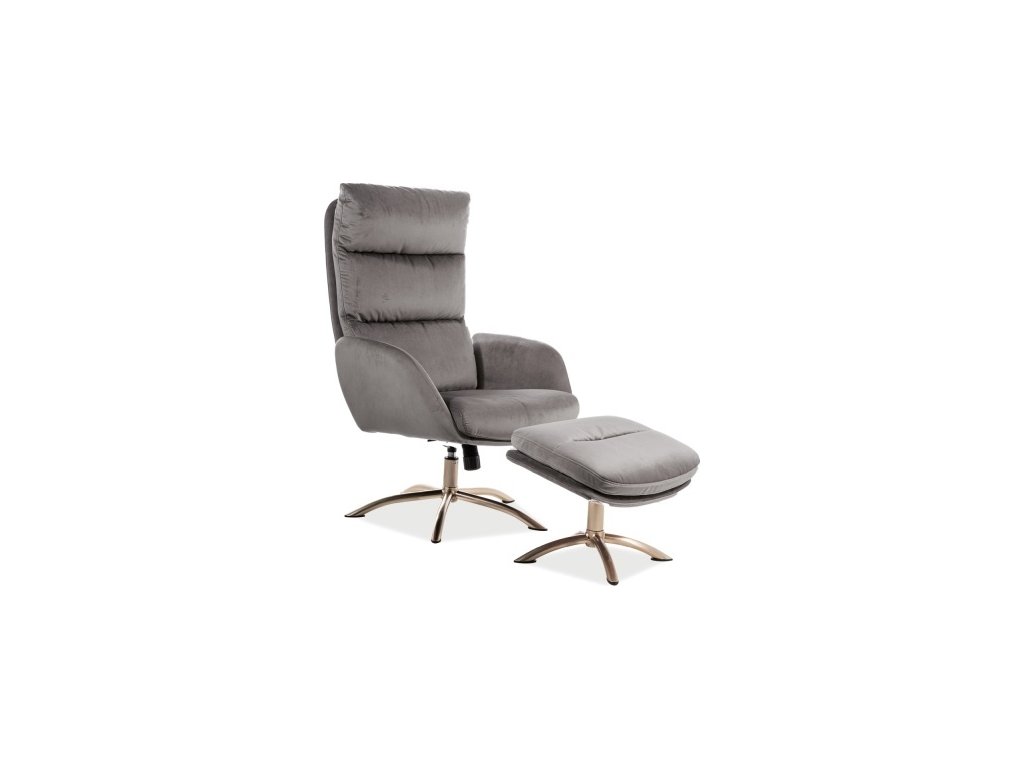 CASA 11819 Čalouněné křeslo v elegantním stylu bude ozdobou každého interiéru. Noha křesla je z kovu - leštěné oceli, čalounění je z látky aksamit (Bluvel 14) v šedé barvě. Součástí křesla je podnožka o rozměrech v/š/hl - 42/49/43 cm. Pohodlí a elegance v kvalitním provedení ve Vašem obýváku, dětském pokoji či kanceláři.