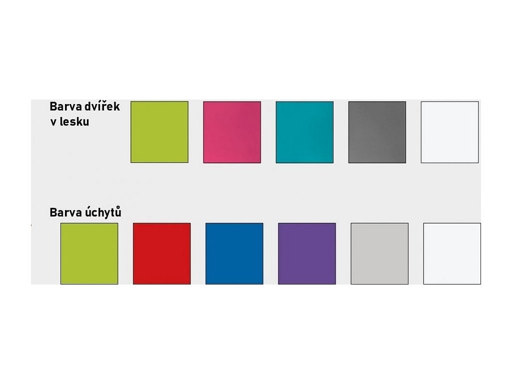 Nejprve si zvolte barvu dvířek v lesku ( viz barva ), poté si zvolte barvu úchytů ( viz rolovací okno ).