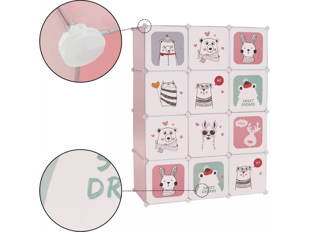 Dětská modulární skříň, růžová / dětský vzor, NURMI