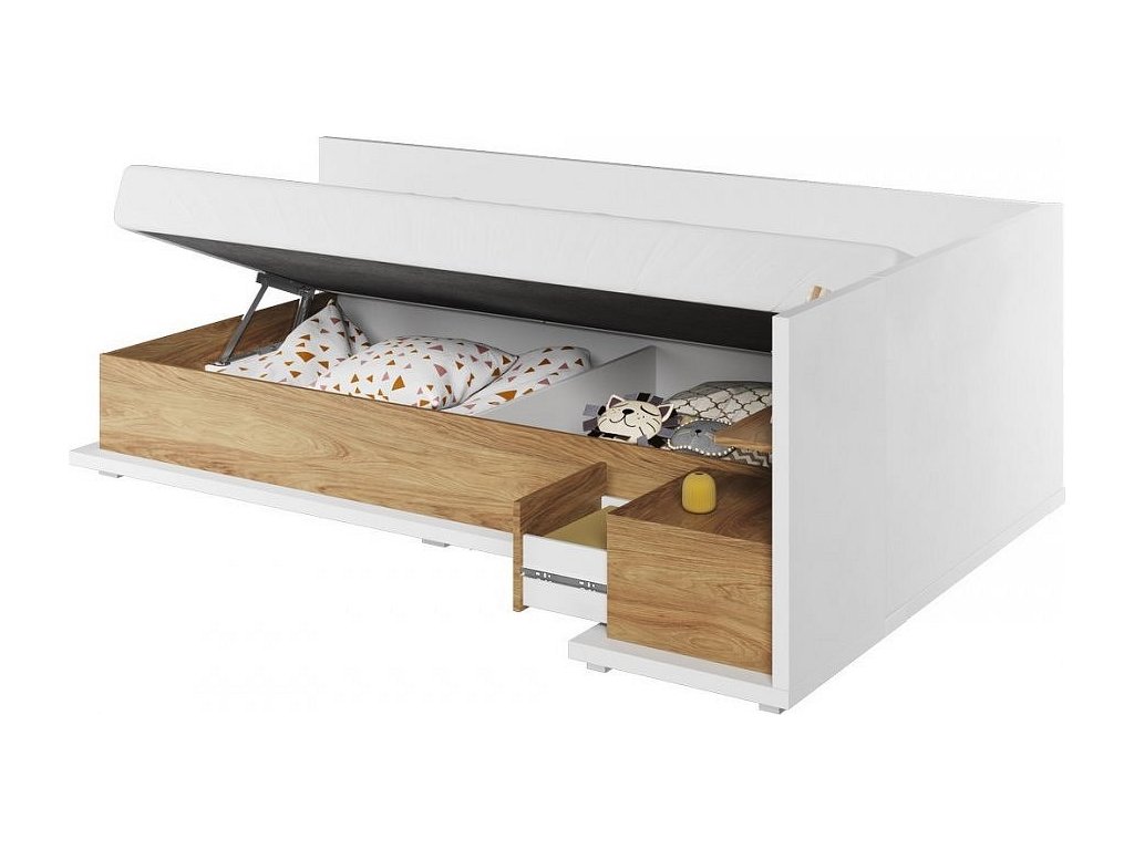 Dětská postel SOMAS 09P, 90x200 s úložným prostorem, pravá, bílá/ořech natural