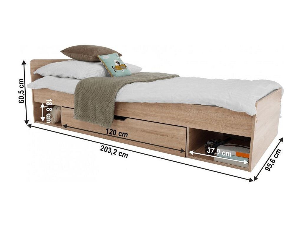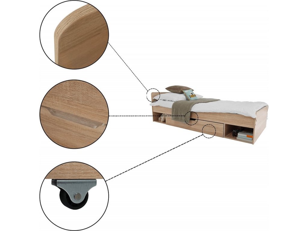 Dětská postel TEYO 1S / 90 s úložným prostorem, dub sonoma