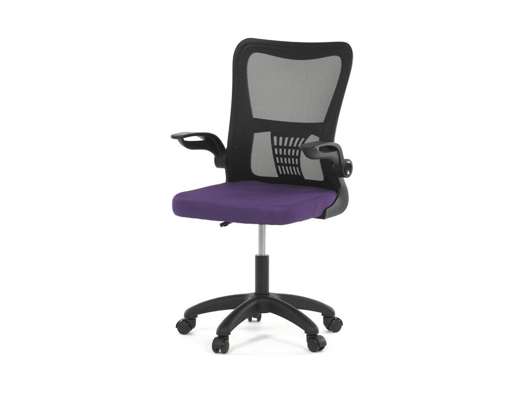 Kancelářská židle s označením KA-K2006 PUR nabízí komfortní sezení díky širokému sedáku potaženému fialovou látkou a prodyšnému opěráku z černé síťoviny, který zajišťuje optimální cirkulaci vzduchu během práce. Odklápěcí plastové područky umožňují snadné přizpůsobení prostoru a usnadňují zasunutí židle pod stůl. Židle je vybavena houpacím mechanismem s možností nastavení výšky sedáku, což přispívá k ergonomii a individuálnímu nastavení podle potřeb uživatele. Bederní opěrka integrovaná v opěráku podporuje správné držení těla a snižuje únavu zad. Stabilní plastový kříž s kolečky určenými pro tvrdé povrchy zajišťuje mobilitu a bezpečné používání na různých typech podlah.