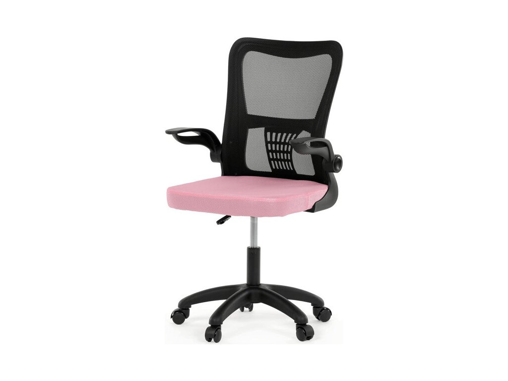 Kancelářská židle s označením KA-K2006 PINK kombinuje moderní design s funkčností vhodnou pro každodenní práci. Opěrák je vyroben z černé prodyšné síťoviny, která zajišťuje optimální cirkulaci vzduchu a podporuje pohodlí při delším sezení. Sedák je čalouněný růžovou látkou s dostatečnou výplní pro komfortní posed. Odklápěcí plastové područky umožňují snadné přizpůsobení pracovnímu prostoru a zvyšují flexibilitu používání. Houpací mechanismus s možností nastavení výšky sedáku přispívá k ergonomii a individuálnímu nastavení. Plastový kříž zajišťuje stabilitu a kolečka jsou určena pro tvrdé povrchy, což umožňuje snadný pohyb bez poškození podlahy. Židle je vhodná pro uživatele hledající kombinaci praktičnosti a svěžího barevného akcentu.