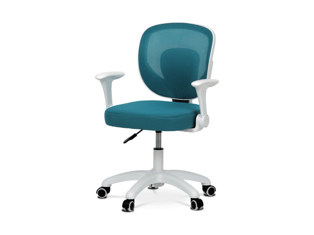 Dětská židle s modrým síťovinovým potahem nabízí prodyšné a pohodlné sezení vhodné pro mladší uživatele. Opěradlo i sedák jsou potažené jemnou síťovinou, která podporuje cirkulaci vzduchu a přispívá k příjemnému pocitu během delšího sezení. Odklápěcí područky z bílého plastu umožňují snadné přizpůsobení prostoru a lepší manipulaci s židlí. Výškově nastavitelný mechanismus umožňuje snadné přizpůsobení výšky sedáku podle potřeby dítěte. Stabilní plastový kříž je vybaven kolečky určenými pro tvrdé podlahy, což zajišťuje hladký pohyb a ochranu povrchu podlahy.
