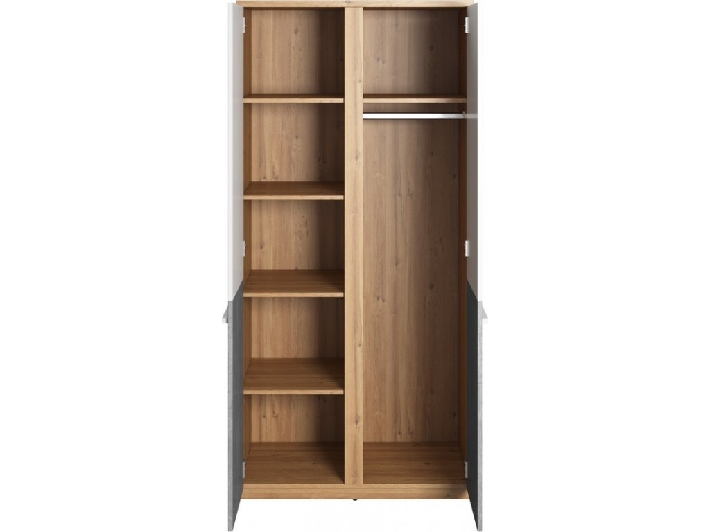 CASA 73034 Sestava dětského pokoje v moderním stylu. Korpus je vyroben z desky LTD v barvě dub nash, dvířka a zásuvky jsou vyrobeny z desky LTD v kombinaci barev šedá/bílá. Sestava se skládá z těchto komponentů (Š x V x H cm) - skříň dvoudveřová (90 x 191 x 51 cm), regál (90 x 161 x 41 cm), komoda (125 x 91 x 41 cm), pracovní stůl (120 x 76 x 55 cm) a postel se zásuvkami (127 x 86 x 211 cm). Součástí postele je rošt, matraci je nutno dokoupit, vhodný rozměr matrace je 120x200 cm. Dodáváme v demontovaném stavu.