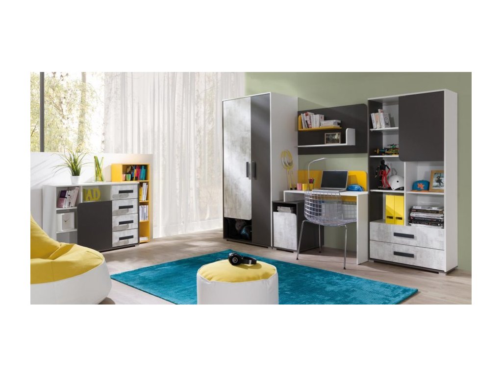 Dětský psací stůl Bruce R8 bílá/grafit/enigma/žlutá