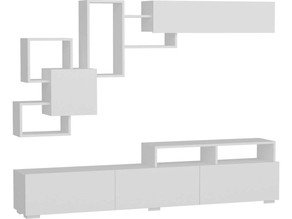 - Sestava obsahuje: Prostorný TV stolek (210 x 36.8 x 46.8 cm) a nástěnnou polici (210 x 26.8 x 102.7 cm), která poskytuje dostatek místa pro knihy, dekorace a další předměty.