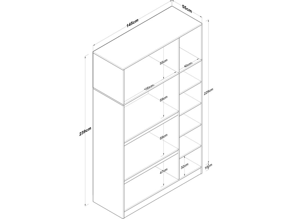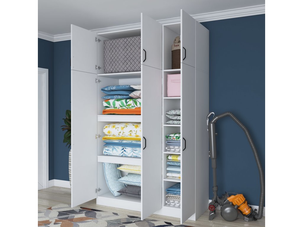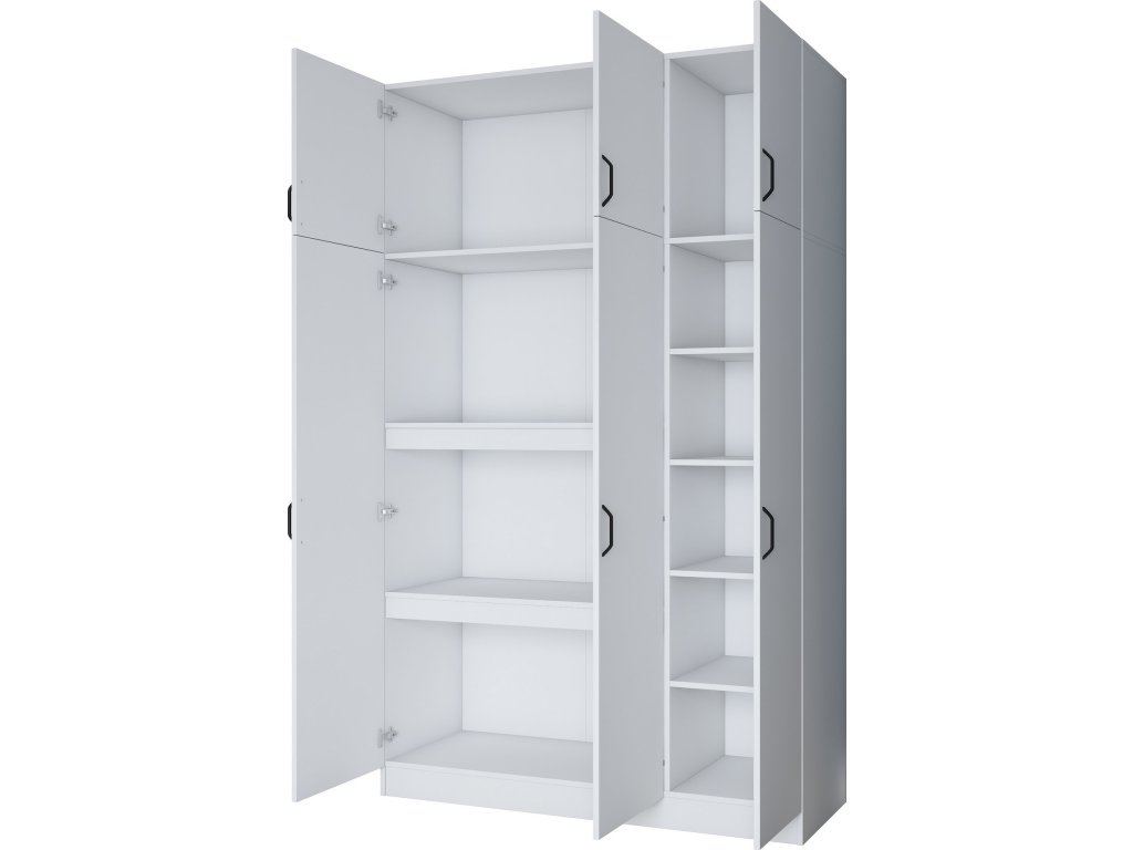 Šatní skříň je navržena pro efektivní organizaci oblečení a doplňků. Obsahuje šest dveří, za kterými se ukrývá šest prostorných polic, které umožňují snadné uspořádání oděvů, ložního prádla nebo jiných nezbytností.