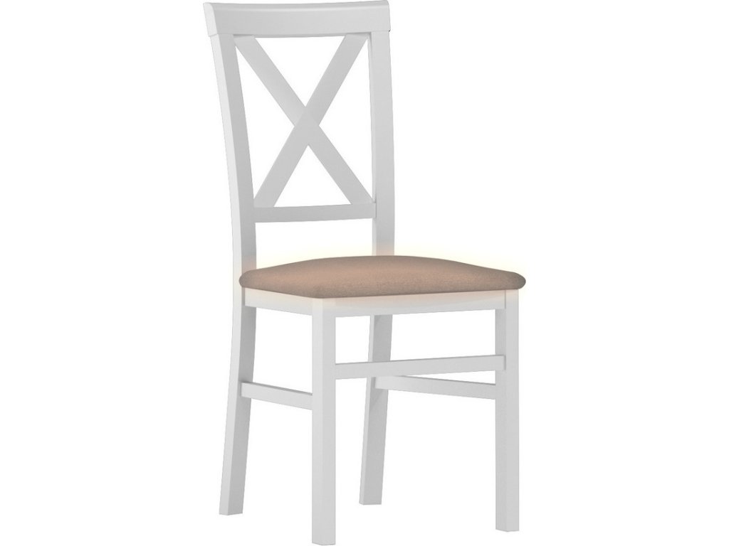 CASA 75002 Jídelní čalouněná židle. Židle je vyrobena z buku, mořeného na bílou barvu. Židle má čalouněný sedák v látce Bahama 03 (béžová). Dodáváme v demontovaném stavu.