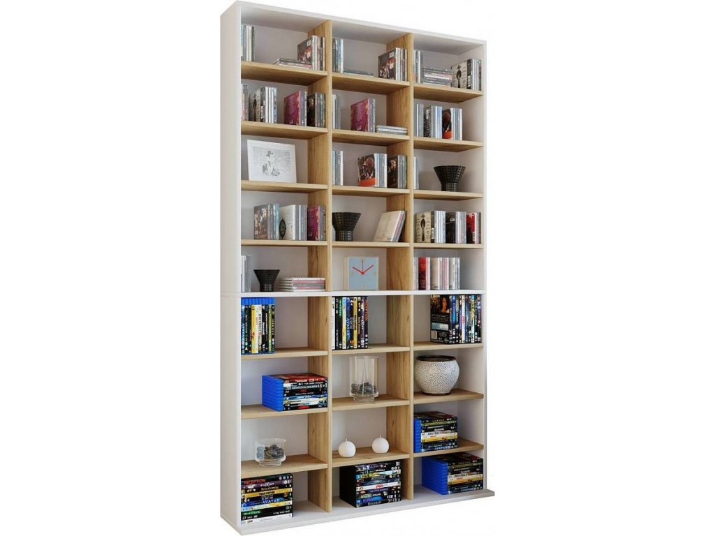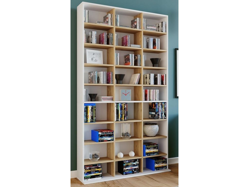 VCM Regál „Megosa Maxi“ – Individuálně použitelný – Vhodný pro uložení 1080 CD nebo 504 DVD – Lze použít jako knihovnu – Celkem 27 přihrádek – 16 variabilních vkládacích polic, 5 pevných – Stabilní zadní stěna – Dodávka obsahuje montážní materiál a montážní návod – Rozměry cca: V 183 x Š 102 x H 23 cm – Replika dřevěné konstrukce