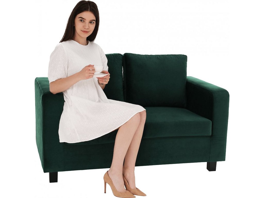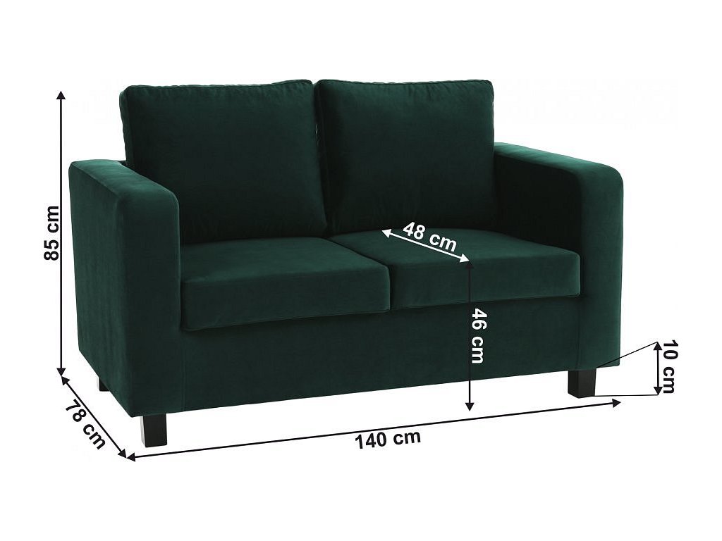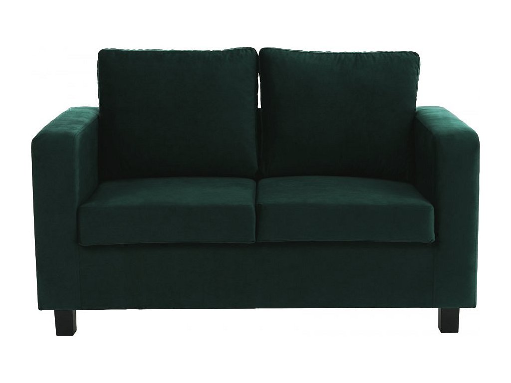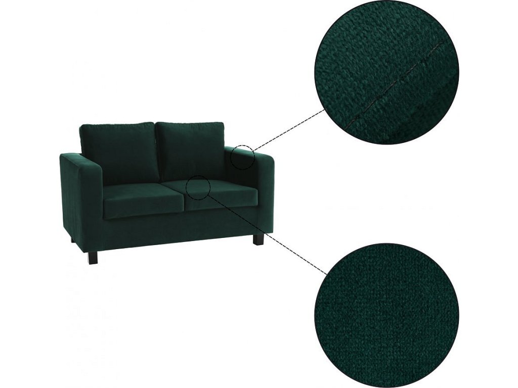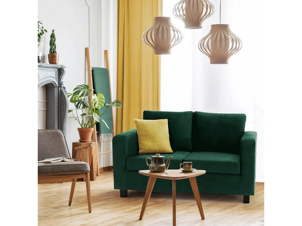 Elegantní dvoumístná pohovka LUANA, potažena ve smaragdové látce. Pohovku je možné doplnit křeslem a trojmístnou pohovkou ve stejném designu. Jádro sezení pružina Faliste a PUR pěna.