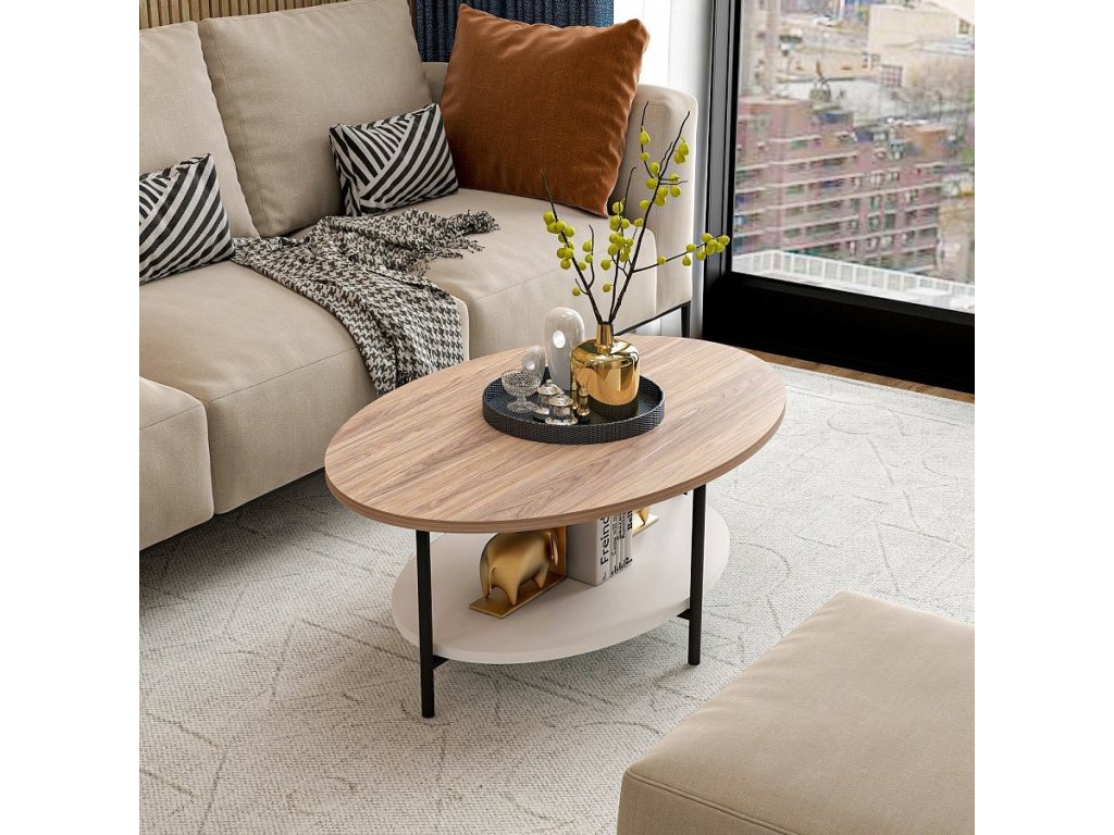 Konferenční stolek se vyznačuje harmonickou směsí dubové a bílé barvy, která vytváří vizuálně výrazný kontrast, jenž dodává každé místnosti nádech sofistikovanosti. Kombinace těchto barev se bez námahy hodí k široké škále interiérových stylů, což z něj činí všestrannou volbu pro jakékoli téma bytového zařízení.