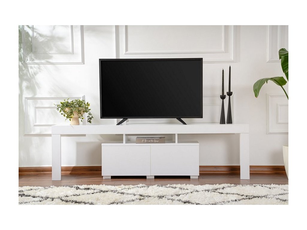 S naším televizním stolkem se rozlučte s nepořádkem a přivítejte pořádek. Díky dostatku úložného prostoru pro všechny vaše mediální potřeby si můžete udržet obývací pokoj uklizený a čistý a zároveň stylově vystavit svou televizi. Dřevotřísková deska s 100% melaminovým povlakem zajišťuje odolnost a dlouhou životnost, takže si tento televizní stolek můžete užívat po mnoho let.