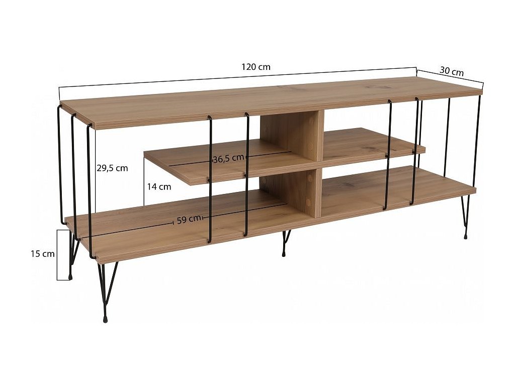 Vylepšete atmosféru svého obývacího pokoje s naším úžasným televizním stolkem. Tento kus nábytku, vyrobený s maximální precizností, je navržen tak, aby vašemu domovu dodal nádech elegance. Jeho moderní a originální koncept v kombinaci s industriálním nádechem z něj činí perfektní doplněk do jakéhokoli moderního interiéru.
