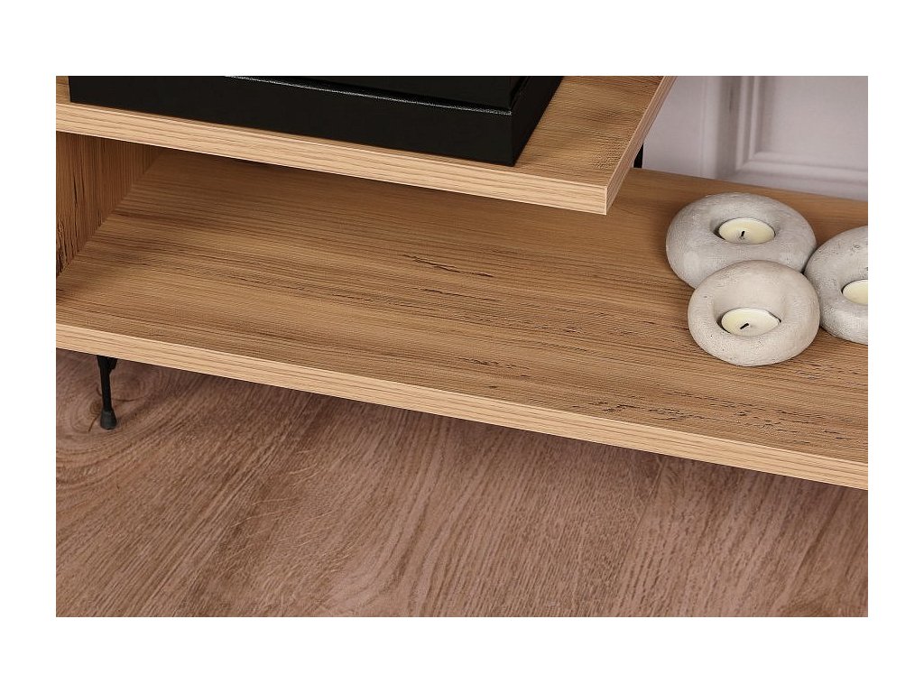 Tento televizní stolek je vyroben ze 100% dřevotřísky s melaminovým povlakem a je navržen tak, aby vydržel. Tloušťka 18 mm zajišťuje robustnost a stabilitu, což vám umožní s jistotou umístit televizi a další elektronická zařízení. Kovové nohy nejen dodávají elegantní a moderní vzhled, ale také poskytují vynikající oporu.