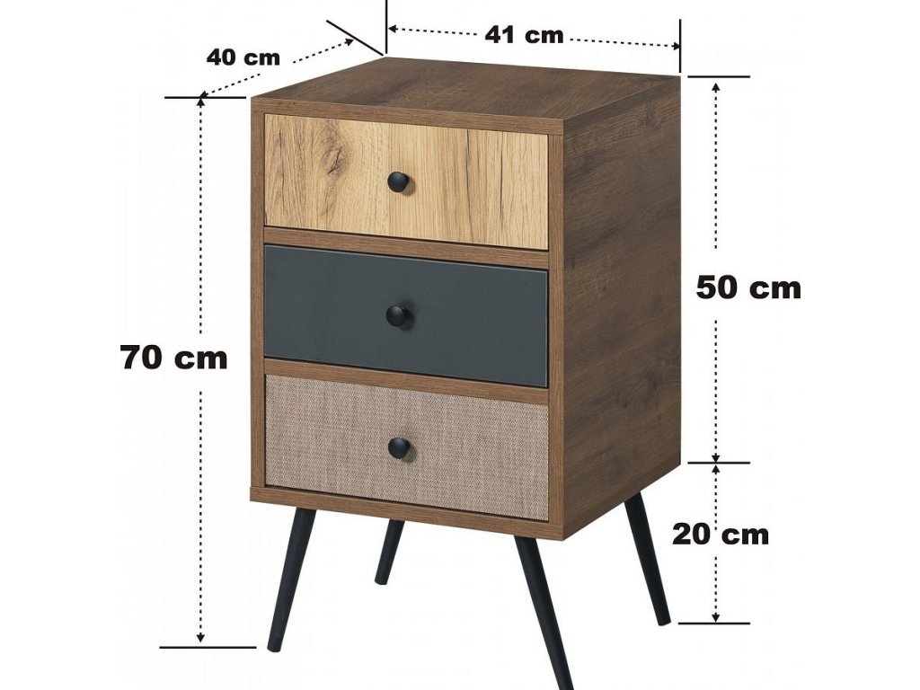 Tato komoda je vybavena třemi prostornými zásuvkami a nabízí dostatek úložného prostoru pro vaše oblečení, doplňky nebo jakékoli další nezbytnosti. Zásuvky se plynule posouvají, což umožňuje snadný přístup a bezproblémovou organizaci.