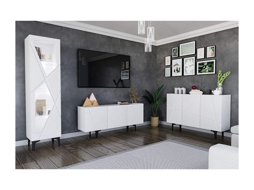 Stylová obývací sestava s elegantním a moderním designem je navržena tak, aby byla dekorativním a funkčním doplňkem vaší domácnosti. Patří do exluzivní kolekce nábytku do obýváku. Sestava poskytuje dostatek úložného prostoru pro uspořádání prádla, knih, či jiných předmětů. Obývací sestava je ideálním řešením do každého obytného prostoru, snadno se čistí vlhkým hadříkem.