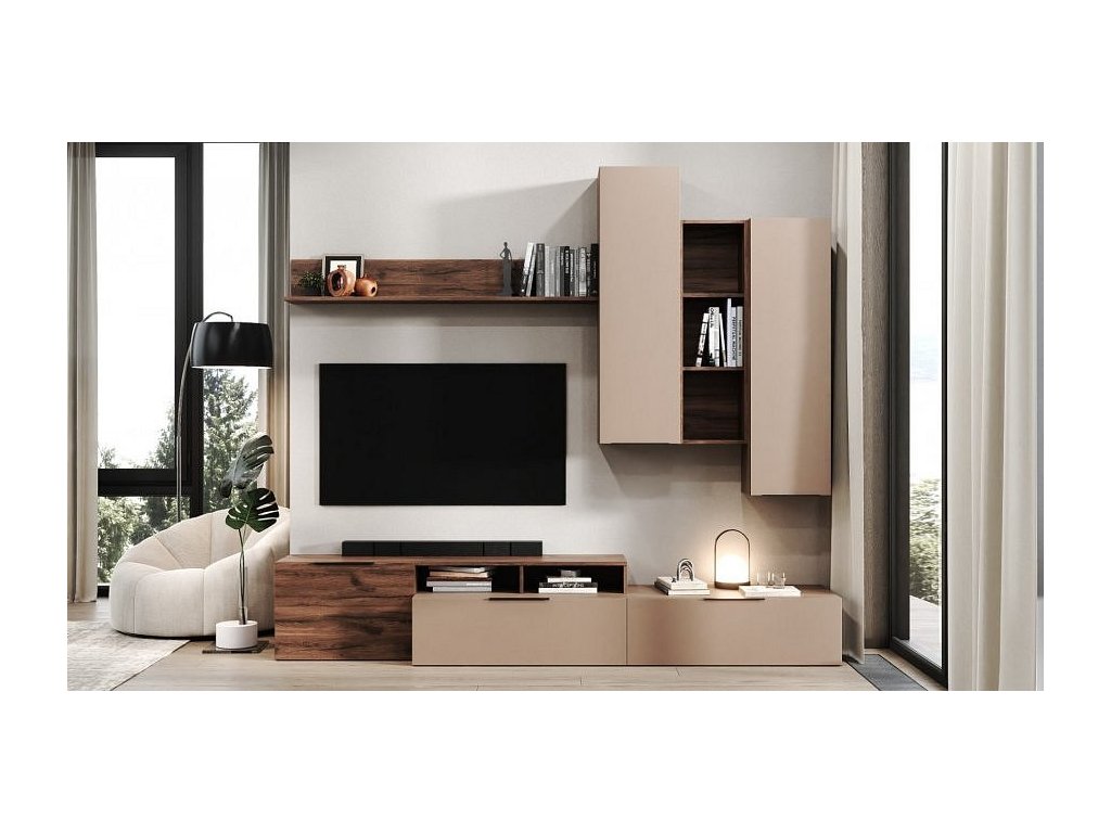 Obývací stěna vás zaujme svým elegantním designem. Kombinace barevného provedení dub Livorno/toffy dodá vašemu interiéru hřejivý pocit domova. Design je jednoduchý, ale zároveň moderní, což jej činí ideálním pro současné obývací prostory.