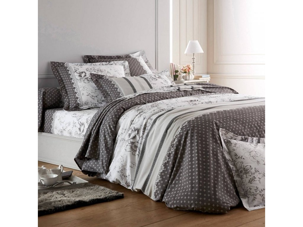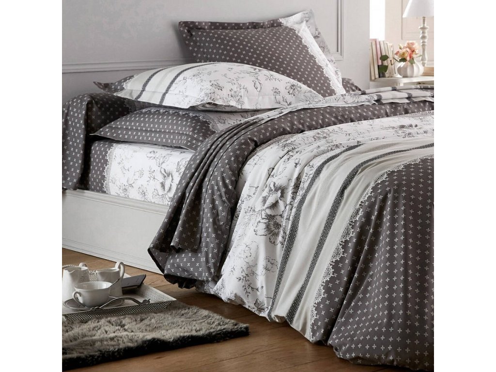 Flanelové povlečení Gabrielle s potiskem květin a krajky