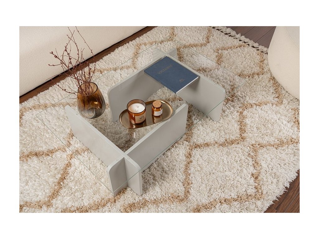Tento konferenční stolek je vyroben ze 100% tvrzeného skla, takže je nejen vizuálně úchvatný, ale také neuvěřitelně odolný a má dlouhou životnost. Rám je vyroben ze 100% dřevotřísky s melaminovým povlakem, což zajišťuje stabilitu a pevnost po mnoho let.