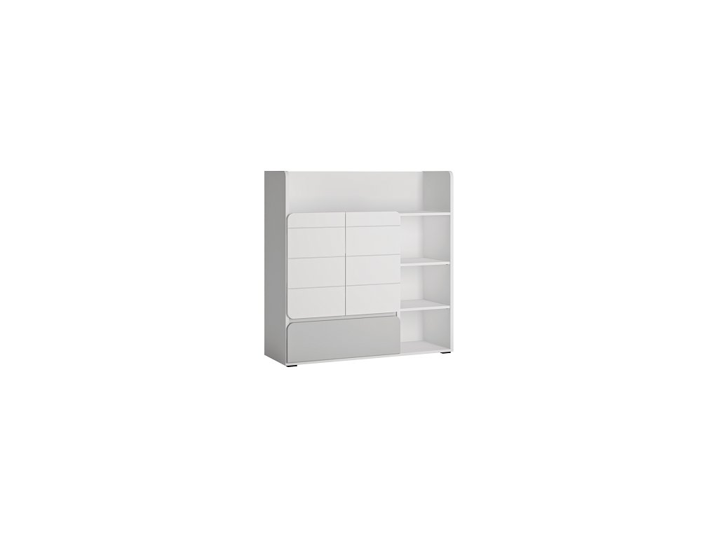 FULIA R03 - Komoda 2D1S s regálem, lamino bílá alpská/světle šedá/ šedá lesk MDF (FLEXI FLXR03=2BALÍKY) kolekce (W) (K150)