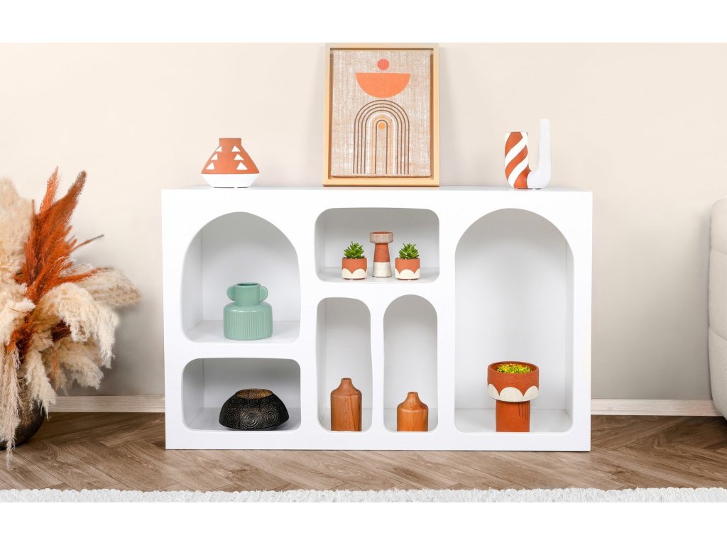 Knihovna je navržena tak, aby spojovala estetiku a praktičnost. Nabízí dostatek úložného prostoru pro vaše oblíbené knihy, dekorace či další drobnosti. Díky elegantní bílé barvě se snadno sladí s vaším interiérem.