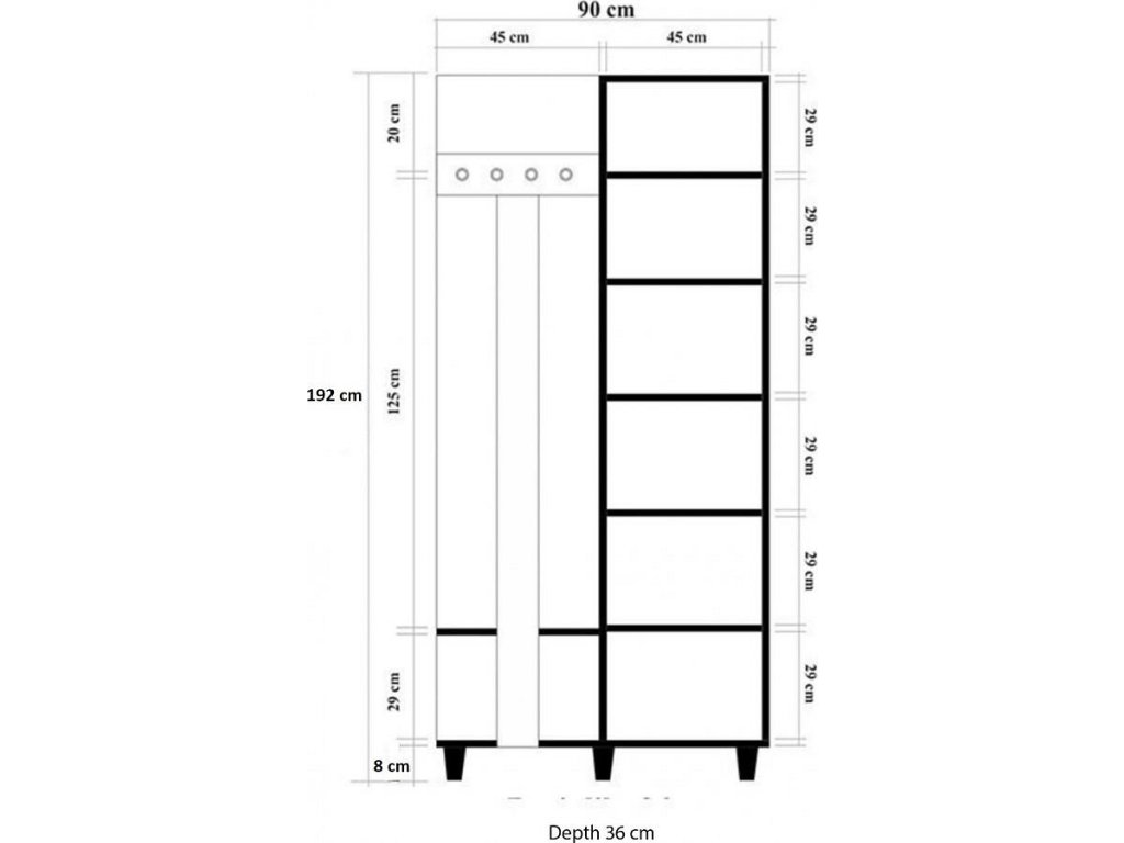 - Šířka: 90 cm, Výška: 192 cm, Hloubka: 36 cm