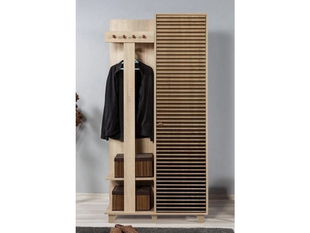 Tento věšák do předsíně je vyroben ze 100% dřevotřísky s melaminovým povrchem a je vyroben tak, aby vydržel. Tloušťka 18 mm zajišťuje odolnost a UV povlak chrání před opotřebením. Plastové nohy poskytují stabilitu a oporu, díky čemuž bude kousek spolehlivým kusem nábytku po mnoho let.