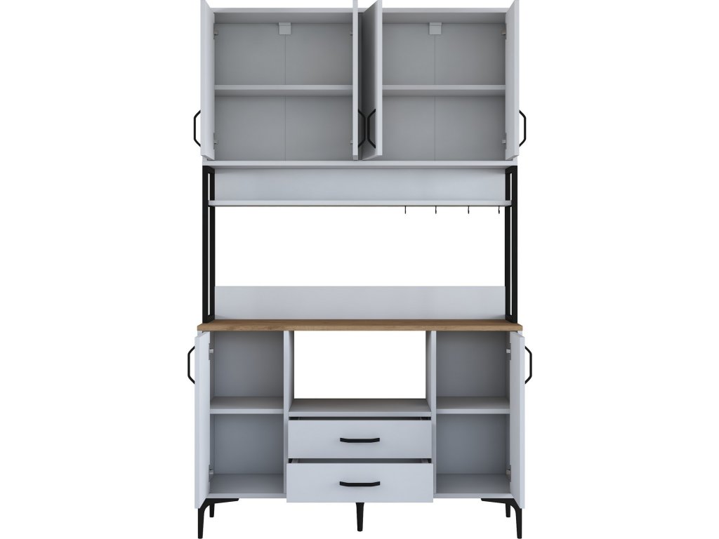 Skříň nabízí dostatek úložného prostoru díky šesti plným dvířkům, dvěma zásuvkám a otevřenému regálku. Je navržena tak, aby pojala nejen mikrovlnnou troubu, ale i další kuchyňské spotřebiče, nádobí či příslušenství.