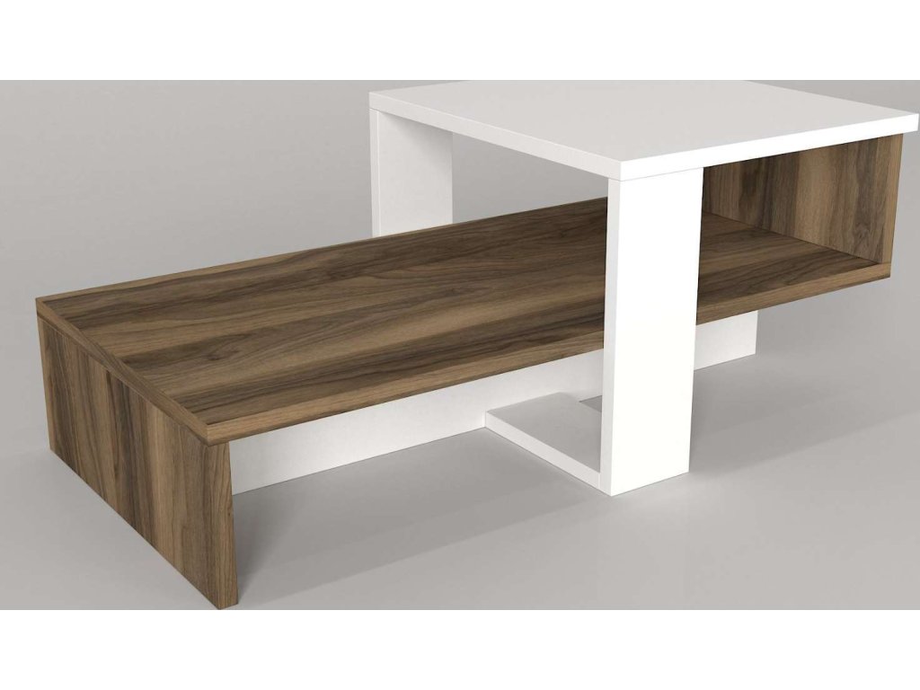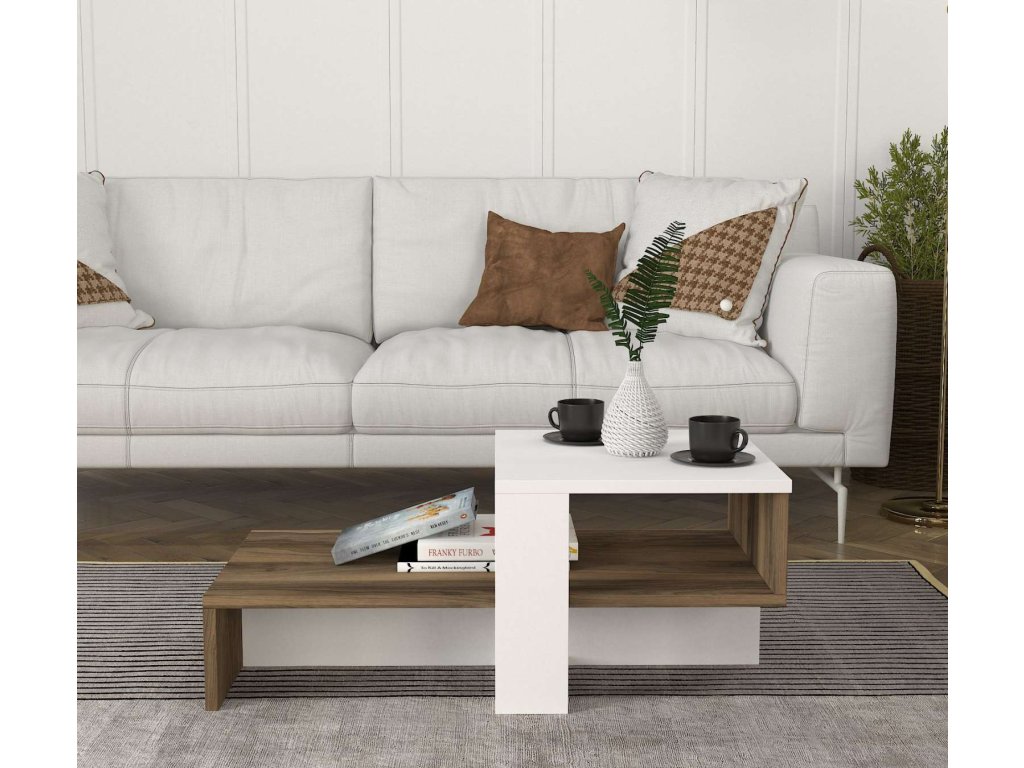 Představujeme konferenční stolek, který přináší do vašeho obývacího pokoje eleganci a funkčnost. Tento stylový nábytek v kombinaci bílé a ořechové barvy je navržen tak, aby poskytoval praktické a estetické řešení pro vaše potřeby.