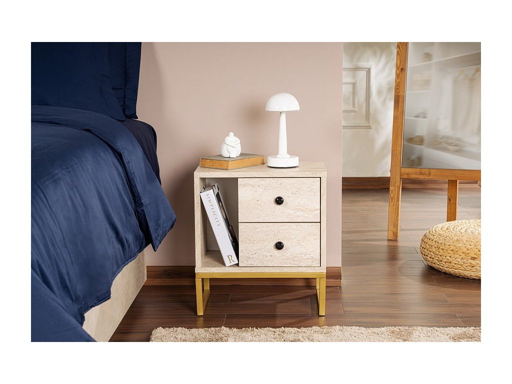 Glimmer noční stolek na nožičkách, traventin / zlatá