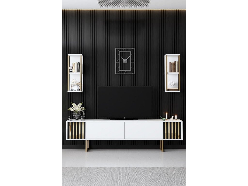 Gold Line luxusní obývací stěna, bílá / černá