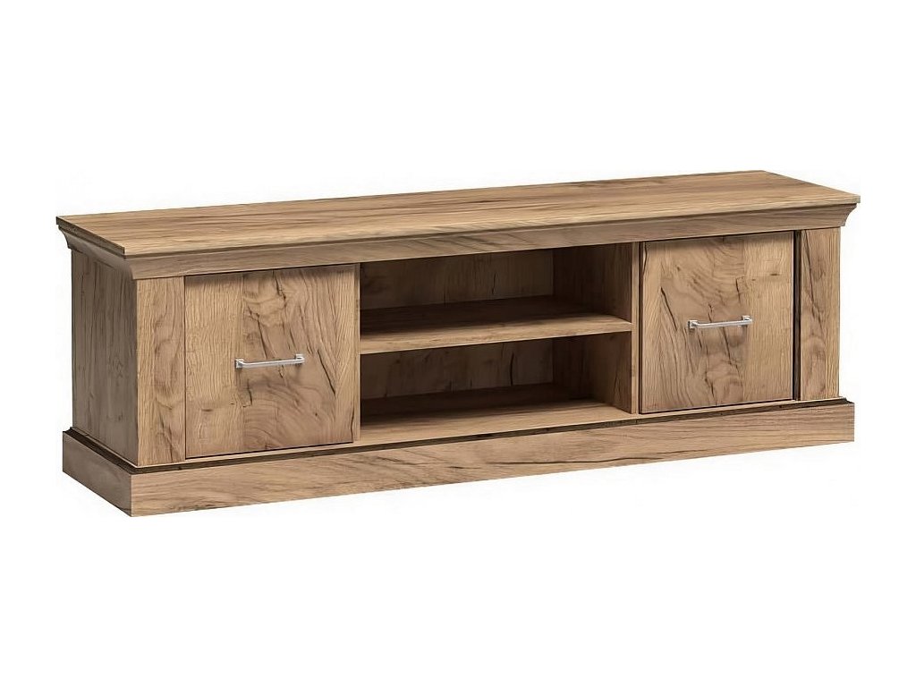 CASA 71001 Televizní stolek ze sektorové řady. Kolekce nábytku v sobě spojuje jednoduchost, krásný vzhled a funkčnost. Jedná se o stylovou kolekci nábytku rustikálního stylu, který je vhodný jak do ložnice tak do obývacího pokoje. Jeho barevné provedení vnese do domova lehkost a eleganci. Barevné provedení - dub zlatý kraft. Nábytek je vyroben z kvalitního lamina ohraničeného ABS páskou. Kolekce se skládá z mnoha prvků a tento široký výběr vám zaručí sestavit si nábytek podle svých vlastních představ a přání. Dodáváme v demontovaném stavu.
