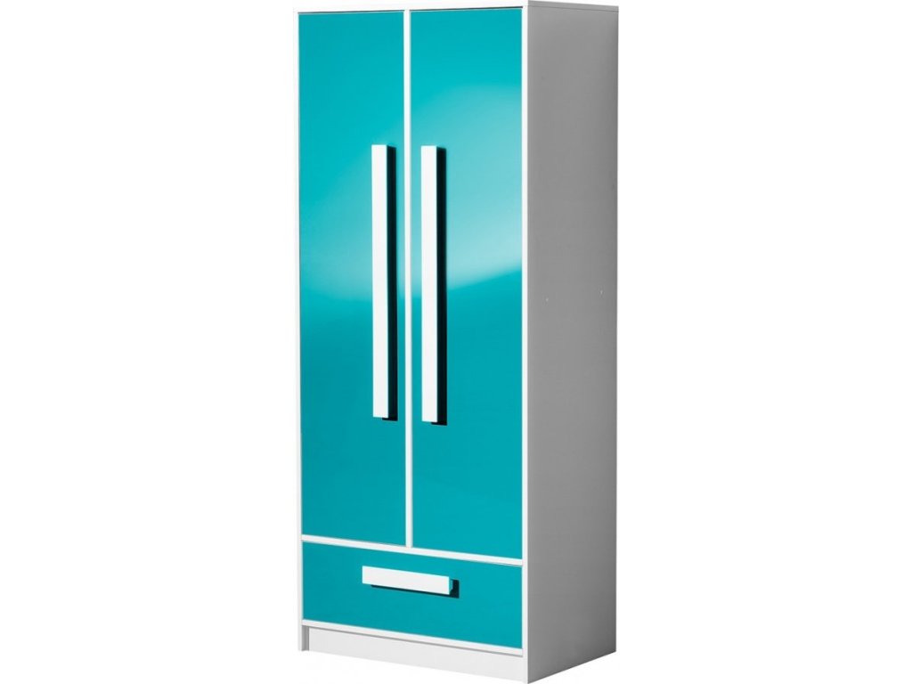 GOLIÁŠ 1- Skříň 80 dvoudvéřová (GULIVER 1) -korpus bílá/dvířka tyrkys lesk/úchyt bílá (DO) (K150-E)